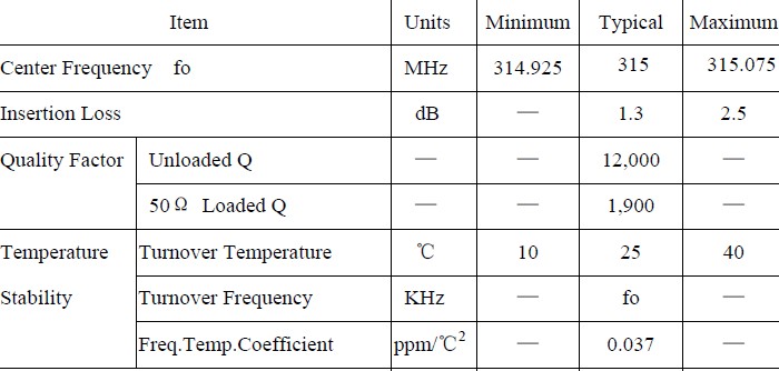 首頁汽車電子產品聲表面諧振器,F11-KR315M,聲表面濾波器