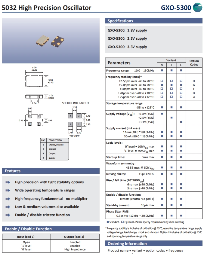 Golledge晶振,GXO-5300晶振,石英晶體振蕩子.5032mm體積的石英晶體振蕩器,有源晶振,該產(chǎn)品可驅(qū)動(dòng)2.5V的溫補(bǔ)晶振,壓控晶振,VC-TCXO晶體振蕩器產(chǎn)品,電源電壓的低電耗型,編帶包裝方式,可對(duì)應(yīng)自動(dòng)高速貼片機(jī)自動(dòng)焊盤,及IR回流焊盤(無(wú)鉛對(duì)應(yīng)),為無(wú)鉛產(chǎn)品,小型,質(zhì)地輕.產(chǎn)品被廣泛應(yīng)用到集成電路,程控交換系統(tǒng),無(wú)線發(fā)射基站.