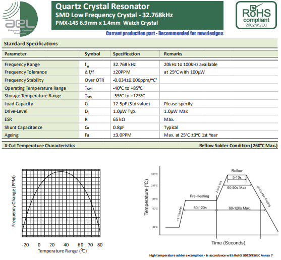 AEL晶振,PMX-145晶振,陶瓷面石英晶體.小體積SMD時鐘晶體諧振器,是貼片音叉晶體,千赫頻率元件,應用于時鐘模塊,智能手機,全球定位系統(tǒng),因產(chǎn)品本身體積小,SMD編帶型,可應用于高性能自動貼片焊接,被廣泛應用到各種小巧的便攜式消費電子數(shù)碼時間產(chǎn)品,環(huán)保性能符合ROHS/無鉛標準.