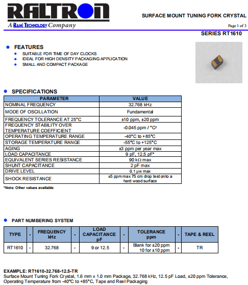 | Raltron晶振 | 單位 | RT1610晶振 | 石英晶振基本條件 |