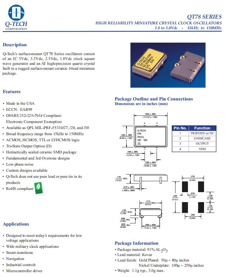 QT78HCD11M-75.000MHz|6G發(fā)射器晶振|低相位噪聲晶振, Q-Tech美國晶振,QT78有源晶振,QT78HCD11M-75.000MHz晶振,進(jìn)口貼片晶振,石英晶體振蕩器,低相位噪聲晶振,頻率75MHz,工作溫度-40~85°C,電壓5V,頻率穩(wěn)定性50ppm,基頻和第三泛音設(shè)計(jì),耐高溫晶振,無鉛環(huán)保晶振,6G發(fā)射器晶振,軍用時(shí)鐘應(yīng)用晶振, 智能彈藥應(yīng)用晶振,工業(yè)控制應(yīng)用晶振,微控制器驅(qū)動(dòng)器應(yīng)用晶振.