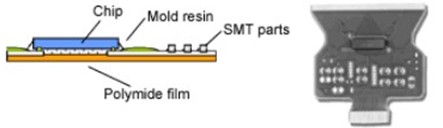 IC芯片,貼片晶振等SMT部件安裝在薄膜基板上,不僅可以實現薄型封裝,還可以實現高自由度的輕質,緊湊和高密度封裝.而且,金或鍍錫的鉛可以粘合到金凸塊上,并且這種內部引線鍵合方法具有低阻抗的特性.