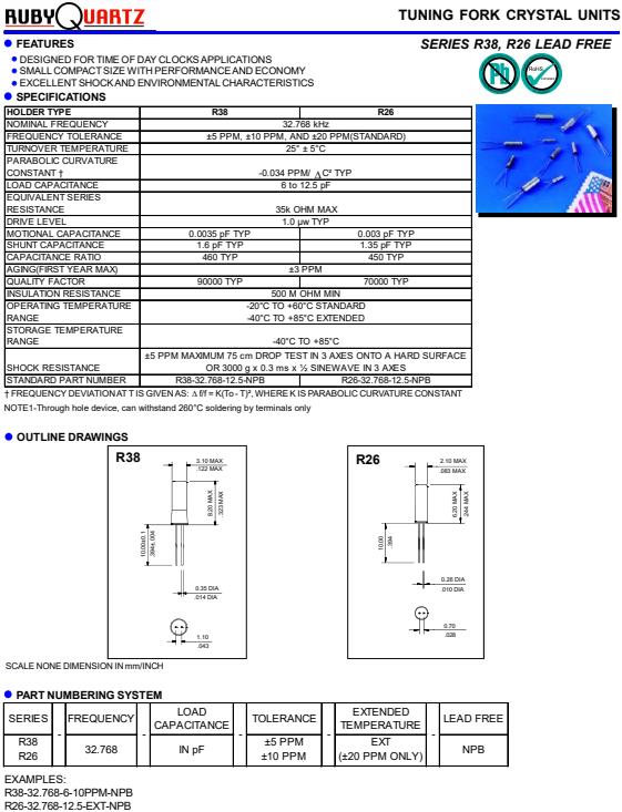 | STANDARD PART NUMBER | R38-32.768-12.5-NPB |
