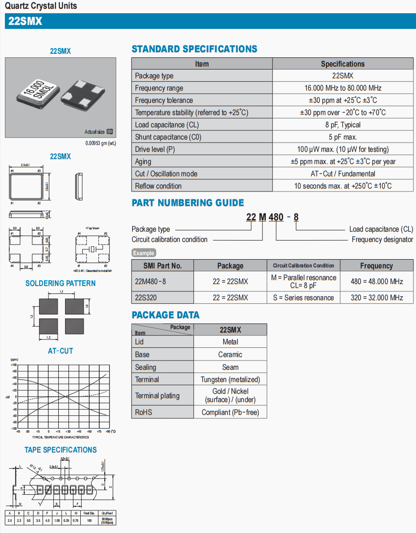 22M420-10晶振,SMI高品質(zhì)環(huán)保晶振,電車(chē)充電槍晶振