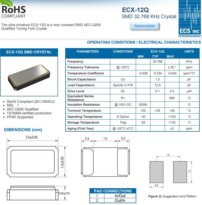 ECS晶振公司非常高興地宣布超小型ECX-12Q是一款非常緊湊的SMD AEC-Q200合格音叉水晶。