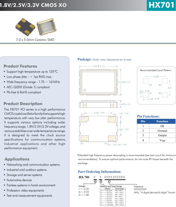 更多>>亞陶生產(chǎn)的高品質(zhì)XO振蕩器HX7011C0020.000000,廣泛用于戶外系統(tǒng)