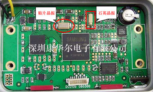 那么所謂的電子家教機為什么會讓他們說得這么神呢?就讓我們來了解一下他的內部結構吧,請大家看下面的圖,下面就是電子家教機的主板,大家有沒有看到紅線圈住的地方那是家教機里面兩個很重要的元件,《晶振》看到那顆用圓圈圈住扁形狀的晶振了嗎?這個叫貼片晶振,四個腳的有源晶振,再來看看另外用長方形圈住的那顆叫石英晶振,也可稱之為圓柱晶振,這顆是插件晶振,它的頻率是32.768KHZ,這兩顆元件一顆是產生原始的時間頻率,另一顆是起到提供基準信號的作用的,這就是我的分析。