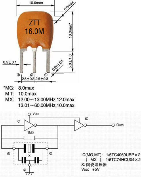 ZTT三腳陶瓷晶振,16.0MHZ,陶瓷諧振器,陶瓷晶振本身內置帶有負載電容的,我們都稱呼為帶電容陶瓷晶振,或者是ZTT陶瓷晶振,產品特性具有對激勵信號頻率十分敏感的突出特點,當外加的交流電場的頻率和諧振器的諧振頻率發生共振時,電能和機械能的轉換會發生在諧振器的諧振頻率上.高頻諧振器內建電容貼片 ZTTC 貼片 SMD 陶瓷諧振器的內置電容,而 ZTAC 則不含電容.ZTTC/ZTAC(與 Murata CSAC/CSTC 系列相容)的頻率范圍在 2.0MHz 至 50.00MHz,頻率公差為 ±0.5%.
