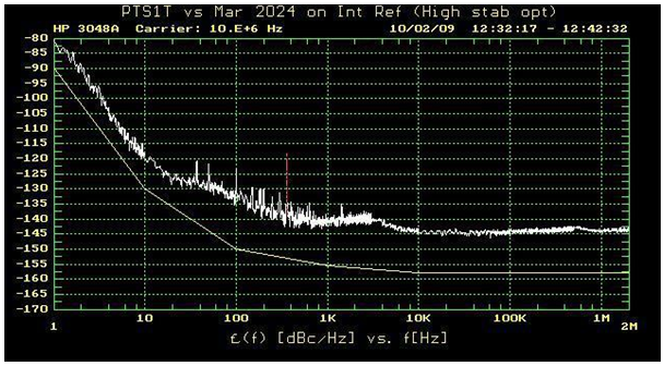 馬可尼2024信號(hào)發(fā)生器–內(nèi)部基準(zhǔn)電壓源參見(jiàn)下圖. 上圖顯示了作者自己的馬可尼2024信號(hào)發(fā)生器的相位噪聲.2024設(shè)置為10MHz晶振,使用內(nèi)部基準(zhǔn)電壓振蕩器.該馬可尼2024安裝了可選的高穩(wěn)定性基準(zhǔn)電壓源.Marconi2024與我們自己的超低噪聲10MHz基準(zhǔn)電壓源CFS10B-03進(jìn)行了比較.CFS10B-03的相位噪聲為–112dBc/Hz@1Hz偏移,本底噪聲為–168dBc/Hz.因此,作為這個(gè)參考,比馬可尼2024要好得多,它不會(huì)影響