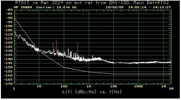 馬可尼2024現(xiàn)在設(shè)置為使用外部基準(zhǔn)電壓源.另一個(gè)CFS10B-03用作外部基準(zhǔn)電壓源. 相位噪聲的測(cè)量方法與以前完全相同.