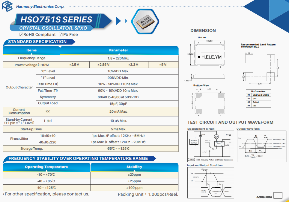 SSR020000K3CHE-T晶振,HELE高精度有源晶體,航空航天晶振,特點:微型超薄SMD產(chǎn)品尺寸(7.0×5.0×0.55 max)。高精度、可靠性高,耐熱性好的有源晶振。針對射頻應用、無線模塊設備、RFID應用和其他基于消費者的產(chǎn)品的優(yōu)化解決方案。臺灣加高晶振公司,HELE晶振,小尺寸晶振,7050晶振,有源晶振,超小型晶振,低損耗晶振,高品質晶振,高精度晶振,程控交換機晶振,無人機晶振,北斗衛(wèi)星定位模塊晶振,高精度晶振,6G室外基站晶振,電腦主板晶振,臺產(chǎn)晶振。