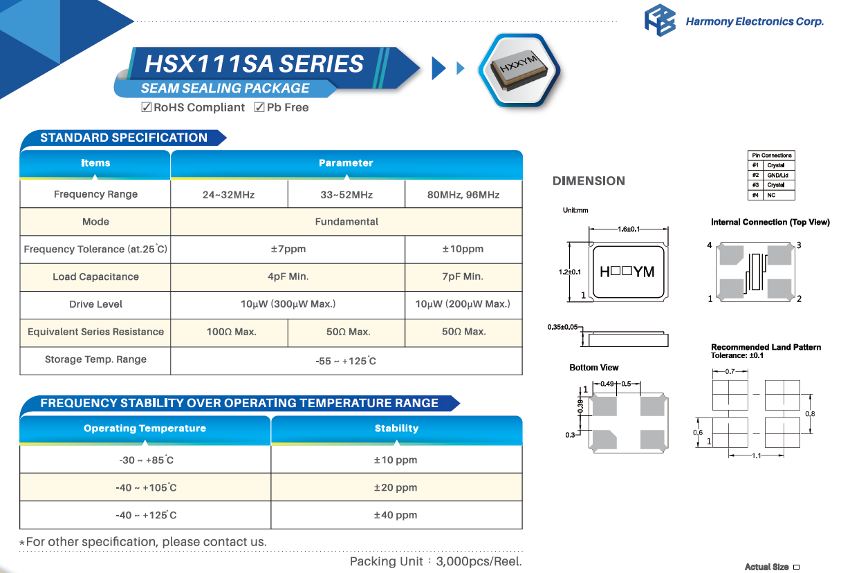 X1C026000B91H-HZ晶振,臺產HELE低損耗晶振,北斗衛星導航晶振,臺灣加高晶振公司,HELE晶振,小尺寸晶振,1612晶振,超小型晶振,超小型晶振,低損耗晶振,高品質晶振,高精度晶振,環保無鉛晶振,電腦主板晶振,智能穿戴設備晶振,6G通訊終端晶振,程控交換機晶振,無人機晶振。特點:超小型尺寸,外形低調(1.65x1.25x0.4)mm高精度、可靠性高,熱量高抵抗針對設計空間有限的智能手機應用程序、小型化無線模塊設備、RFID應用程序和其他基于消費者的產品的優化解決方案。