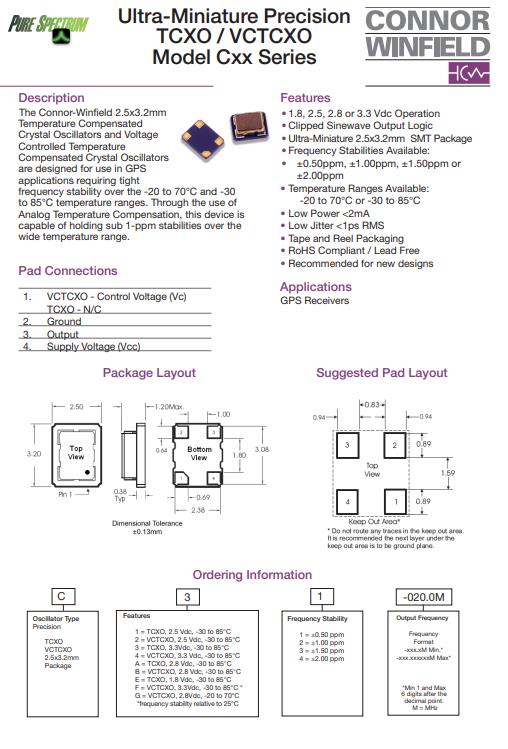 GPS接收器專用溫補(bǔ)晶體振蕩器C34-040.0M,康納·溫菲爾德是一家非常知名的元器件供應(yīng)商,致力于為廣泛應(yīng)用市場(chǎng)提供具有競(jìng)爭(zhēng)優(yōu)勢(shì)的產(chǎn)品,通過自身的努力,開發(fā)一系列優(yōu)質(zhì)的有源晶振產(chǎn)品,并得到廣大用戶的認(rèn)可,編碼C34-040.0M,Connor-Winfield 3.2x2.5mm溫補(bǔ)晶體振蕩器和電壓控制溫度補(bǔ)償晶體振蕩器是為GPS設(shè)計(jì),需要緊密配合的應(yīng)用,頻率穩(wěn)定性在-20至70°C和-30至85°C的溫度范圍。通過使用模擬溫度補(bǔ)償,本裝置是能夠保持低于1ppm的穩(wěn)定性寬溫度范圍。產(chǎn)品主要應(yīng)用GPS接收器。